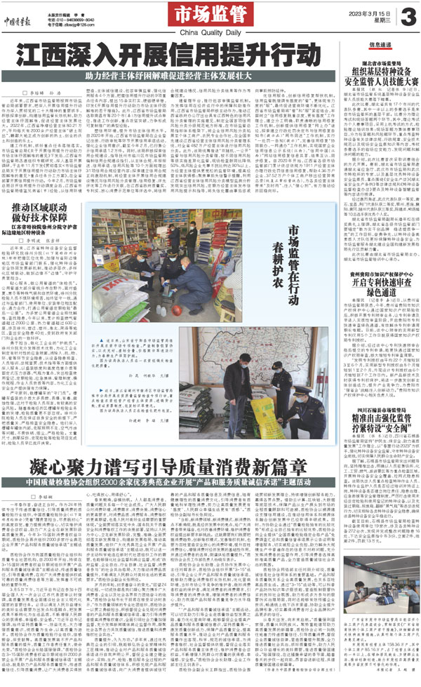 中國質(zhì)量檢驗(yàn)協(xié)會(huì)組織2000多家優(yōu)秀典范企業(yè)共同組織開展2023年“3·15”產(chǎn)品和服務(wù)質(zhì)量誠信承諾主題活動(dòng)