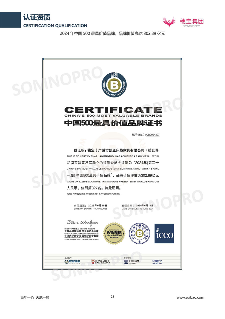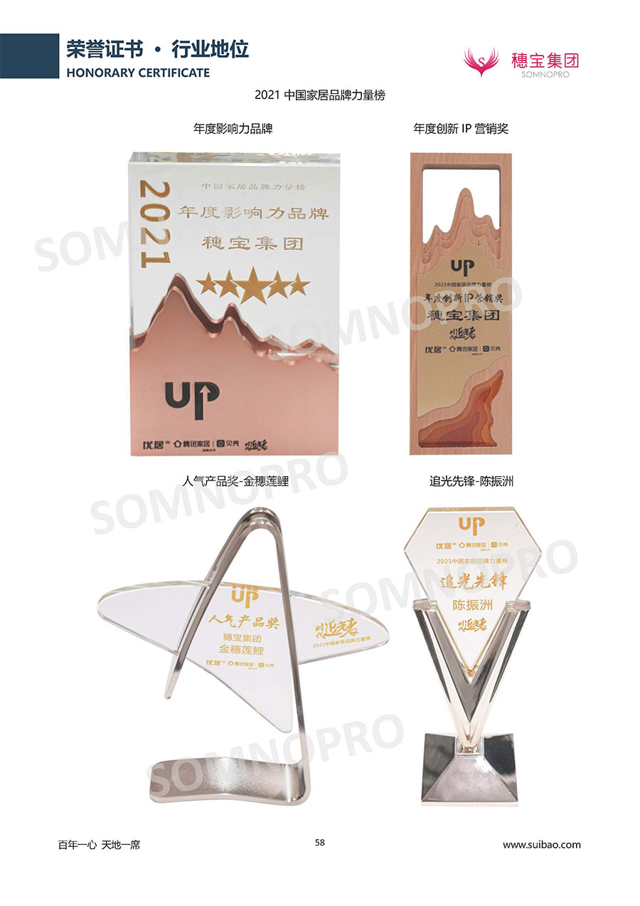 自1971年獨立研發(fā)生產(chǎn)出專屬國人的彈簧床墊,穗寶關(guān)于優(yōu)質(zhì)深度睡眠的研究已有半個世紀(jì)的歷史。穗寶一直專注床墊,專注中國消費(fèi)者的睡眠研究,針對中國人特點進(jìn)行優(yōu)化創(chuàng)新,不斷提升國人的睡眠體驗,只為成就每個晚上8小時的優(yōu)質(zhì)深度睡眠。憑借不斷革新的研發(fā)科技和深受消費(fèi)者信賴的產(chǎn)品品質(zhì),穗寶集團(tuán)旗下品牌和產(chǎn)品屢獲國內(nèi)外大獎,連續(xù)20年榮膺中國500最具價值品牌,品牌價值高達(dá)302.89億元。