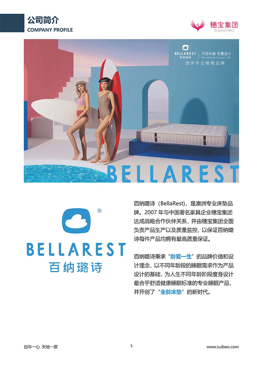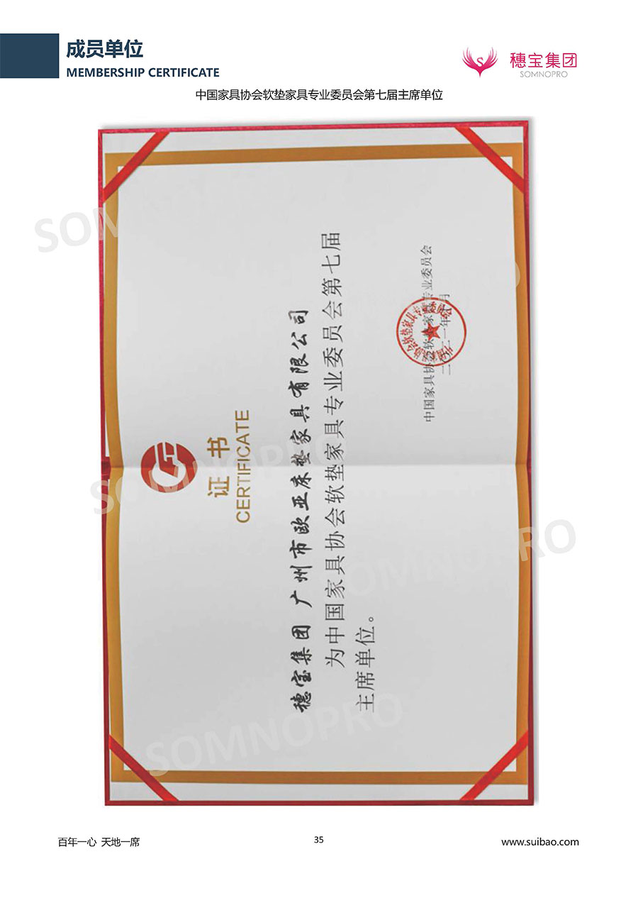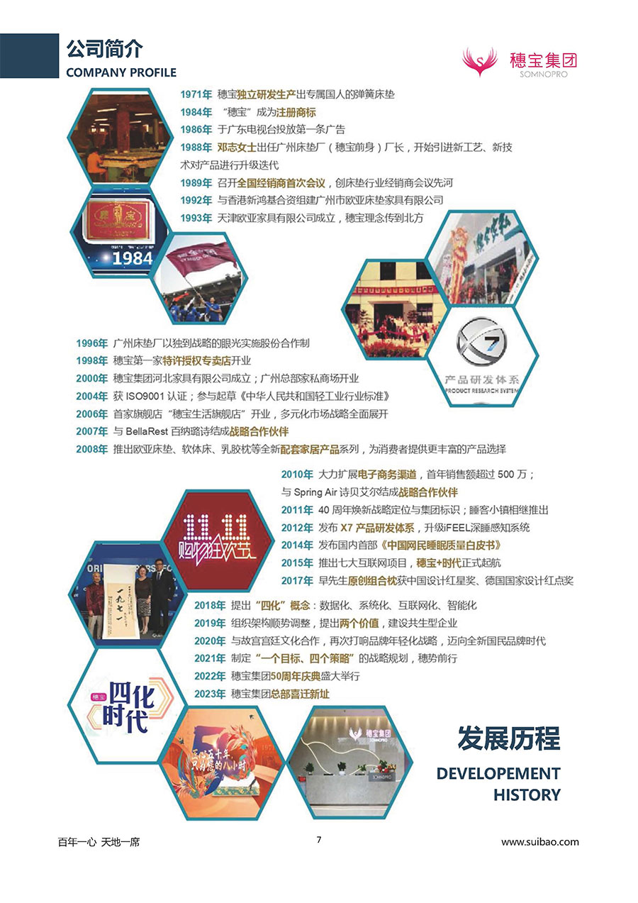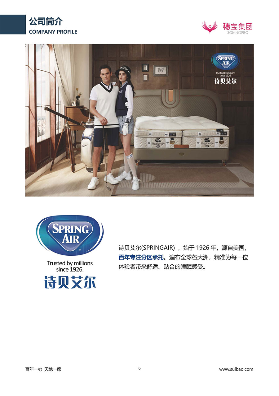 半個世紀(jì)的付出,穗寶集團(tuán)在深度睡眠領(lǐng)域收獲非凡成就,贏得業(yè)界與社會的一致贊譽(yù)。作為大家居行業(yè)的品質(zhì)倡導(dǎo)者,穗寶集團(tuán)不斷創(chuàng)新,豐富品牌實力,致力推動中國床墊產(chǎn)業(yè)發(fā)展。至今,穗寶集團(tuán)旗下?lián)碛卸鄠€來自世界各地的優(yōu)質(zhì)品牌,包括:穗寶、詩貝艾爾、百納璐詩、睡客小鎮(zhèn)、Mr.Z早先生等;此外,穗寶集團(tuán)從世界各地甄選適合不同消費(fèi)者的優(yōu)質(zhì)睡眠產(chǎn)品,定制屬于您的睡眠空間。如今,穗寶集團(tuán)形成以研發(fā)、生產(chǎn)和銷售床墊為主營業(yè)務(wù),涉及家具、家居裝飾、酒店配套等多項業(yè)務(wù)的企業(yè)群體。