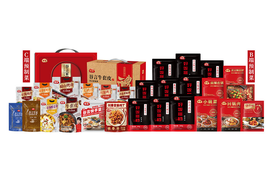 主要產(chǎn)品:谷言預(yù)制菜、捷百味料理包、谷言牧場高端牛肉、嗨飯師自熱產(chǎn)品、速食等