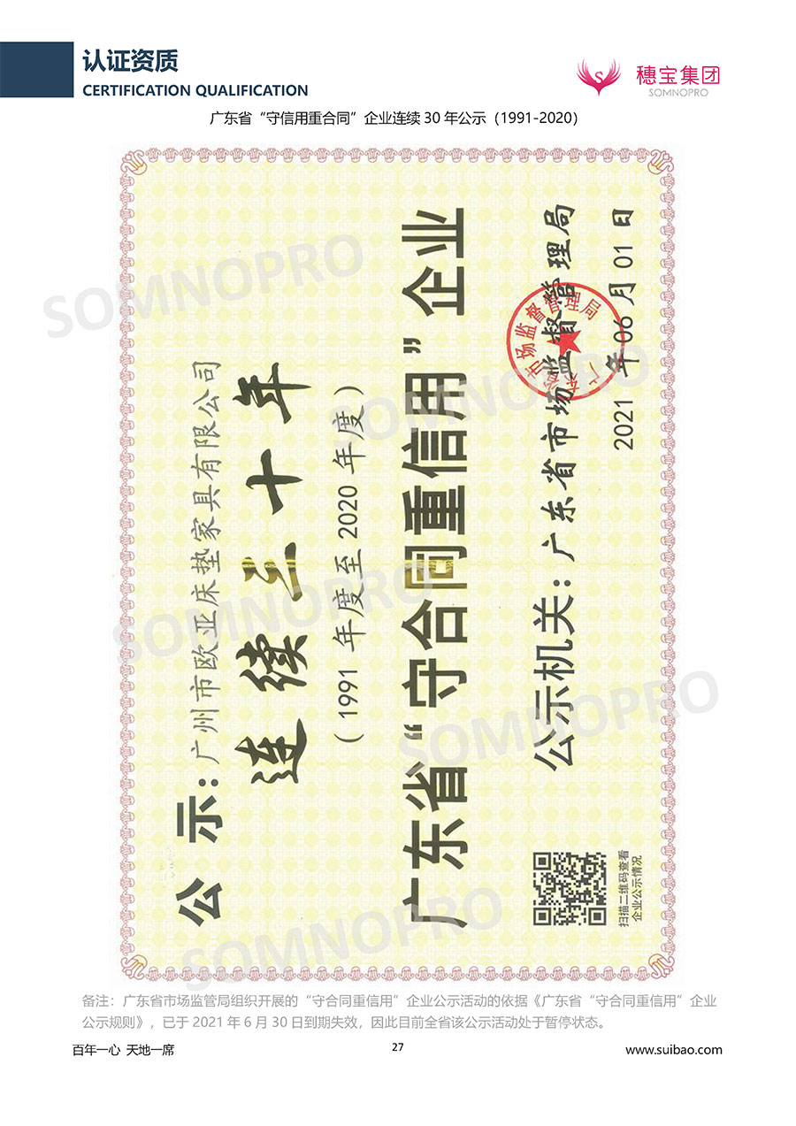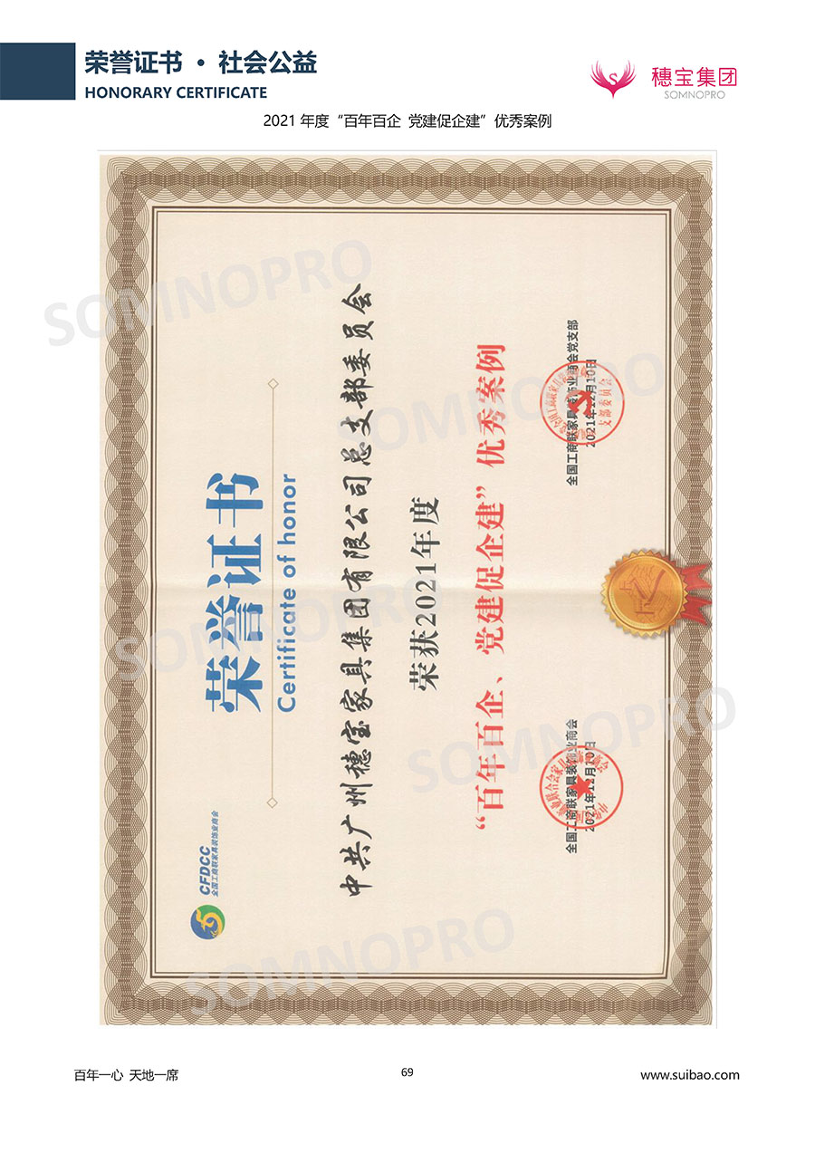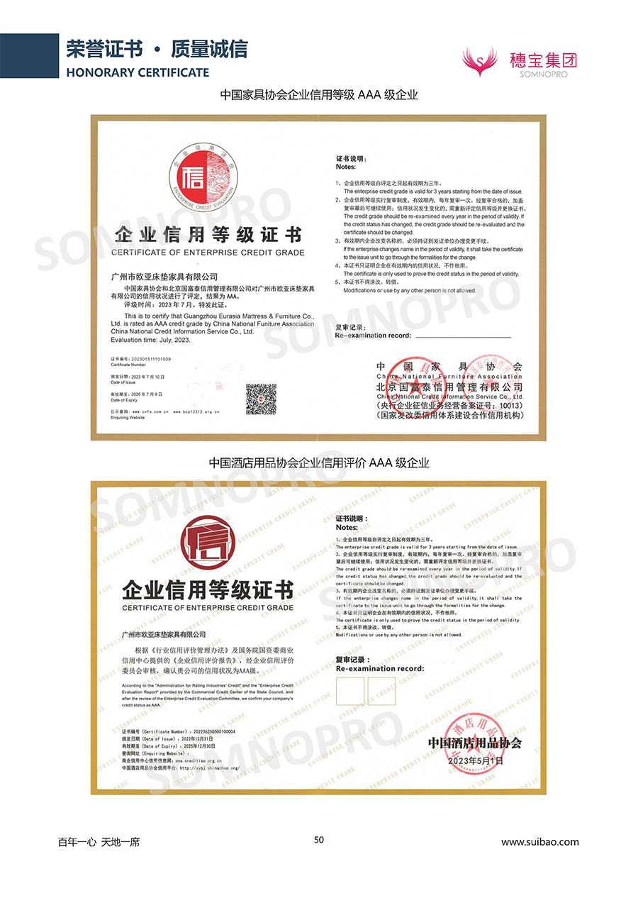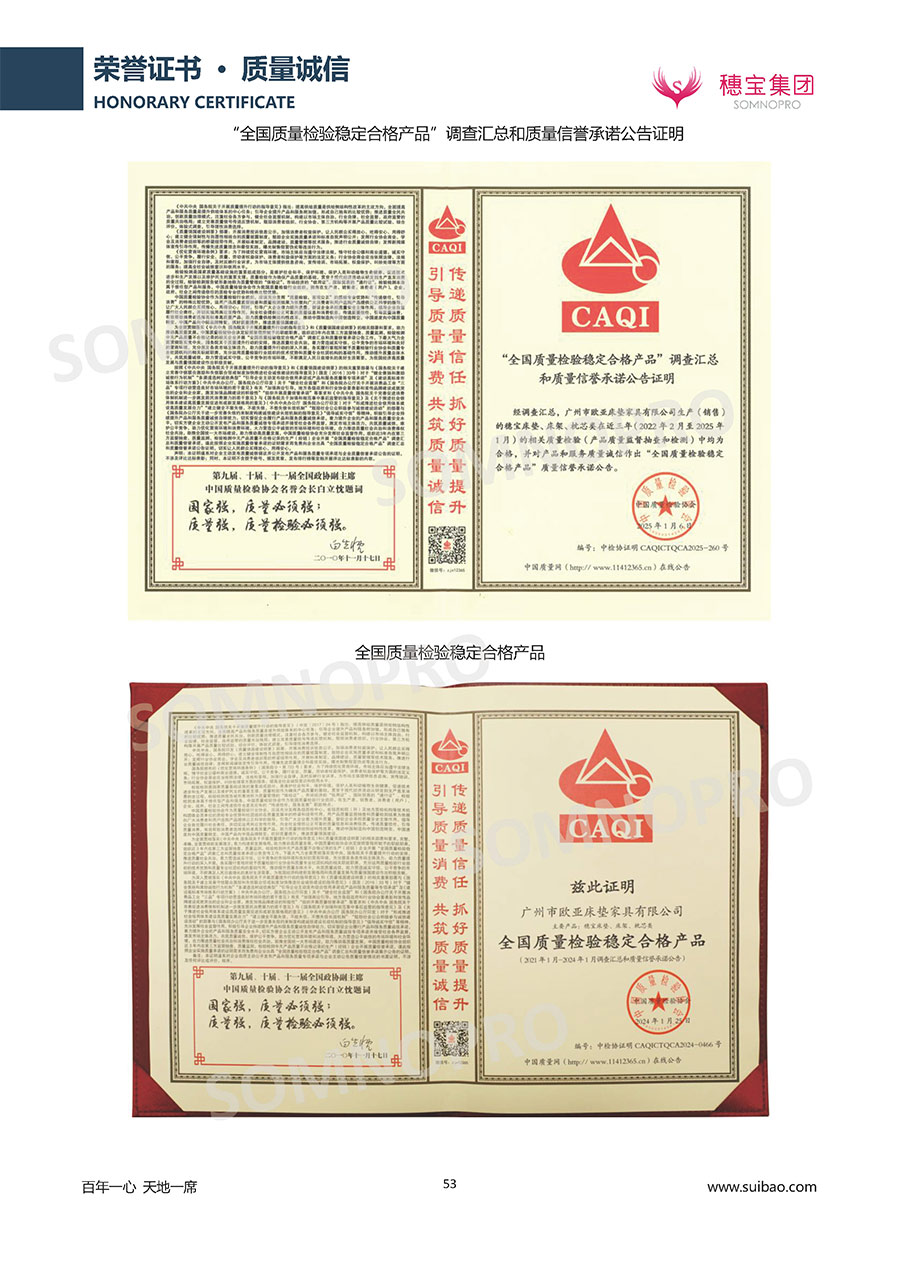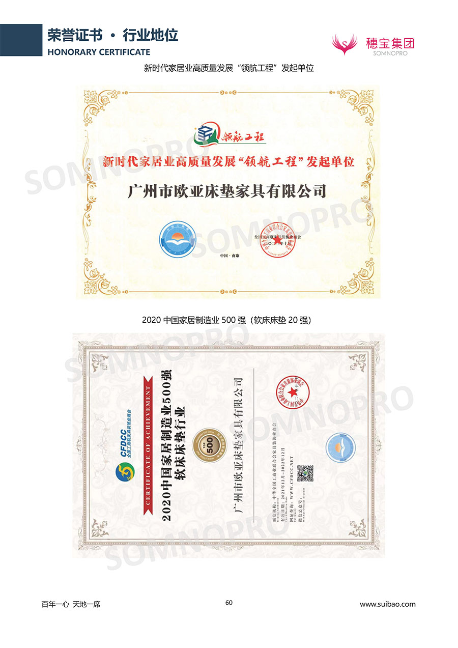 自1971年獨(dú)立研發(fā)生產(chǎn)出專(zhuān)屬?lài)?guó)人的彈簧床墊,穗寶關(guān)于優(yōu)質(zhì)深度睡眠的研究已有半個(gè)世紀(jì)的歷史。穗寶一直專(zhuān)注床墊,專(zhuān)注中國(guó)消費(fèi)者的睡眠研究,針對(duì)中國(guó)人特點(diǎn)進(jìn)行優(yōu)化創(chuàng)新,不斷提升國(guó)人的睡眠體驗(yàn),只為成就每個(gè)晚上8小時(shí)的優(yōu)質(zhì)深度睡眠。憑借不斷革新的研發(fā)科技和深受消費(fèi)者信賴(lài)的產(chǎn)品品質(zhì),穗寶集團(tuán)旗下品牌和產(chǎn)品屢獲國(guó)內(nèi)外大獎(jiǎng),連續(xù)20年榮膺中國(guó)500最具價(jià)值品牌,品牌價(jià)值高達(dá)302.89億元。