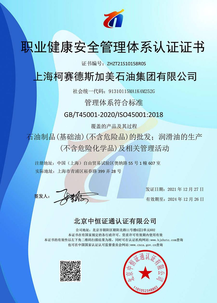柯賽德斯集團(tuán)公司統(tǒng)一遵循嚴(yán)格的質(zhì)量保證體系,先后通過了武器裝備質(zhì)量管理體系認(rèn)證GJB9001C-2017、ISO/TS16949、IS09001質(zhì)量體系認(rèn)證、1S014001環(huán)境體系認(rèn)證及ISO45001:2018職業(yè)健康安全管理體系認(rèn)證。隨著業(yè)務(wù)領(lǐng)域的不斷擴(kuò)展,目前柯賽德斯集團(tuán)公司先后與多家世界能源、化工方面的巨頭建立了產(chǎn)品服務(wù)、供應(yīng)保障、技術(shù)合作、技術(shù)特別支持單位等方面的戰(zhàn)略合作關(guān)系。今天,柯賽德斯集團(tuán)公司旗下管理著三大潤滑油品牌,實現(xiàn)了經(jīng)營上的多元化戰(zhàn)略格局。