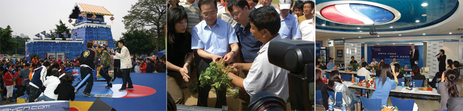 百事公司在大中華區(qū)經營的主要品牌包括:百事可樂、百事輕怡、百事極度、純果樂·果繽紛、純果樂·鮮果粒、純果樂·百分百、美年達、七喜、激浪、佳得樂、草本樂、冰純水、都樂果汁、樂事薯片、桂格麥片和奇多等。百事大中華區(qū)員工約3萬人,并間接地為15萬多人提供了就業(yè)機會,包括服務商、供應商和分銷商等。近五年來,百事在中國共上繳國家利稅超過52億元人民幣,百事大中華區(qū)已成為百事公司在海外最大的飲料市場。2010年5月21日,百事公司董事長兼首席執(zhí)行官盧英德在到訪中國參觀上海世博會時宣布,百事公司計劃未來三年在中國繼續(xù)追加投資25億美元,主要用于建立新廠、增強在華研發(fā)實力、拓展農業(yè)項目及加強品牌建設。