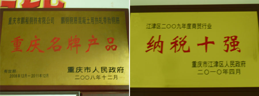 “鵬鋼牌”鋼筋混凝土用熱軋帶肋鋼筋采用了國際上流行的四位一體短流先進生產(chǎn)工藝。2012年公司生產(chǎn)的熱軋帶肋鋼筋HRB400高強鋼筋取得生產(chǎn)許可證,被重慶市政府評為“重慶名牌”產(chǎn)品。“鵬鋼牌”鋼筋混凝土用熱軋帶肋鋼筋每年均受江津區(qū)質(zhì)量技術(shù)監(jiān)督局、重慶市質(zhì)量技術(shù)監(jiān)督局等部門的監(jiān)督抽查,合格率達100%。在全市同行中,“鵬鋼牌”鋼筋混凝土用熱軋帶肋鋼筋無論是產(chǎn)量、質(zhì)量、市場占有率在全市都名列第一。