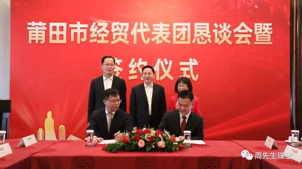 懇談會(huì)期間,莆田經(jīng)貿(mào)代表團(tuán)與眾多莆仙籍企業(yè)家面對(duì)面交流,就共同推進(jìn)項(xiàng)目合作達(dá)成諸多意向,舉行了簽約儀式。香港周先生珠寶金行國(guó)際集團(tuán)有限公司作為應(yīng)邀出席的企業(yè)之一,在眾多領(lǐng)導(dǎo)的見(jiàn)證下簽署“香港周先生珠寶金行國(guó)際集團(tuán)有限公司供應(yīng)鏈平臺(tái)”項(xiàng)目合作協(xié)議 。