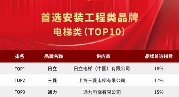 電梯類NO.1 日立電梯連續(xù)13年入選中國房地產首選供應商