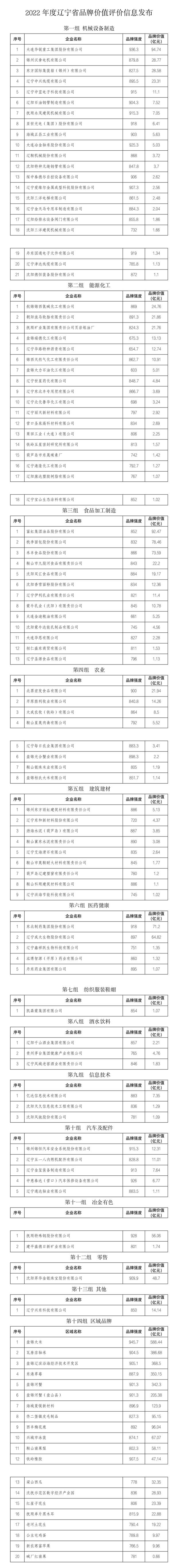 6月8日,省品牌建設(shè)促進(jìn)會(huì)發(fā)布2022年度遼寧省品牌價(jià)值評價(jià)信息,評價(jià)結(jié)果顯示,大連華銳重工集團(tuán)股份有限公司以94.74億元的品牌價(jià)值,居企業(yè)品牌價(jià)值榜第一位;盤錦大米以588.44億元的品牌價(jià)值登上區(qū)域品牌榜首。