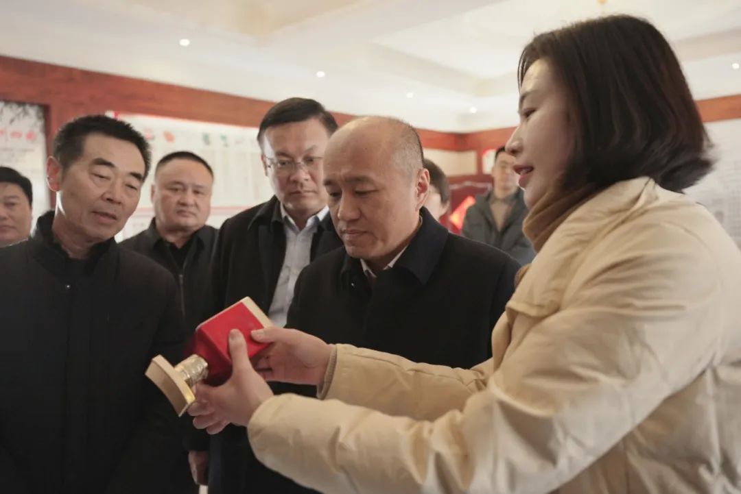 2024年1月4日上午,諸城市委書記張建偉帶領(lǐng)相關(guān)部門負(fù)責(zé)人到山東諸城密州酒業(yè)有限公司調(diào)研企業(yè)發(fā)展情況與文創(chuàng)產(chǎn)品開發(fā)工作,公司董事長董長安、黨委書記董莉全程陪同接待。