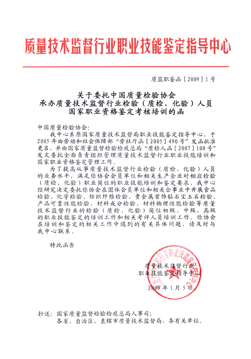 參加我會(huì)組織的培訓(xùn)并經(jīng)考試、鑒定合格者,將由(國家質(zhì)量監(jiān)督檢驗(yàn)檢疫總局)質(zhì)量技術(shù)監(jiān)督行業(yè)職業(yè)技能鑒定指導(dǎo)中心頒發(fā)中華人民共和國勞動(dòng)和社會(huì)保障部印制的《中華人民共和國職業(yè)資格證書》(初級(jí)、中級(jí)、高級(jí))。《中華人民共和國職業(yè)資格證書》既是從事相關(guān)檢驗(yàn)崗位人員所具備的職業(yè)技術(shù)要求和職業(yè)技能水平的資格憑證,也是用人單位技能人才評(píng)價(jià)、招收錄用和確定技能人才工資待遇的主要依據(jù),還是我國公民境外就業(yè)和輸出勞務(wù)具備法律效力公正的國家級(jí)有效證件(可應(yīng)學(xué)員要求頒發(fā)英文版本的證書)。